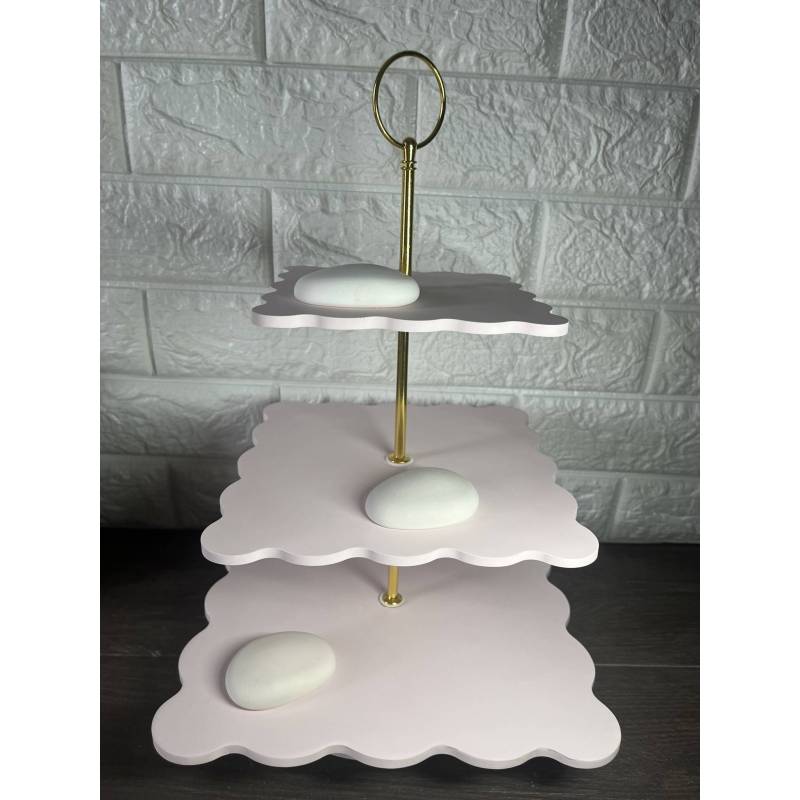 6944865286Τριώροφο διακοσμητικό stand (candy bar) σε minimal γραμμή, ιδανικό για στολισμό βάπτισης, γάμου ή εκδήλωσης. Διαθέτει κομψές καμπύλες επιφάνειες και μεταλλική χρυσή βάση που προσδίδει μία elegant και σύγχρονη αισθητική.