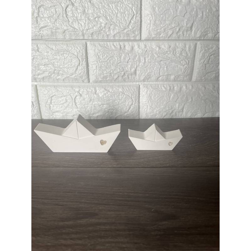 Μίνι διακοσμητικό καραβάκι από ρητίνη πορσελάνης, σε minimal και κομψό σχεδιασμό με διακριτική καρδιά στο πλάι.