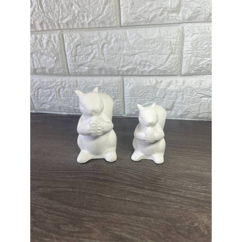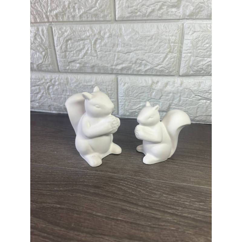 Γλυκά σκιουράκια που κρατούν ένα βελανίδι, φτιαγμένα από ρητίνη πορσελάνης, σε δύο διαφορετικά μεγέθη.