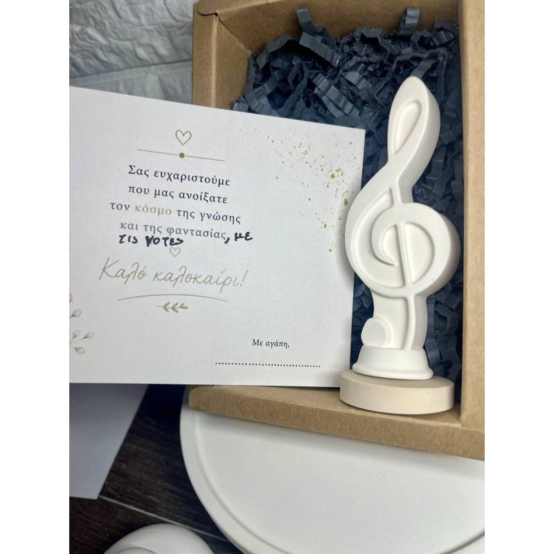 Διακοσμητικό σε σχήμα κλειδιού του σολ από ρητίνη πορσελάνης, σχεδιασμένο με κομψές καμπύλες και minimal αισθητική που αναδεικνύει τη μουσική του ταυτότητα. Ένα ιδιαίτερο κομμάτι που προσθέτει καλλιτεχνική πινελιά σε κάθε χώρο, ιδανικό για μουσικούς, παιδικά δωμάτια, στούντιο ή για όσους αγαπούν τη διακόσμηση με χαρακτήρα. Το ουδέτερο του χρώμα το καθιστά εύκολο να συνδυαστεί με κάθε στυλ, από μοντέρνο έως πιο κλασικό. Κατασκευάζεται χειροποίητα με προσοχή στη λεπτομέρεια και μπορεί να προσαρμοστεί σε αποχρώσεις της επιλογής σας, δημιουργώντας ένα μοναδικό διακοσμητικό στοιχείο.